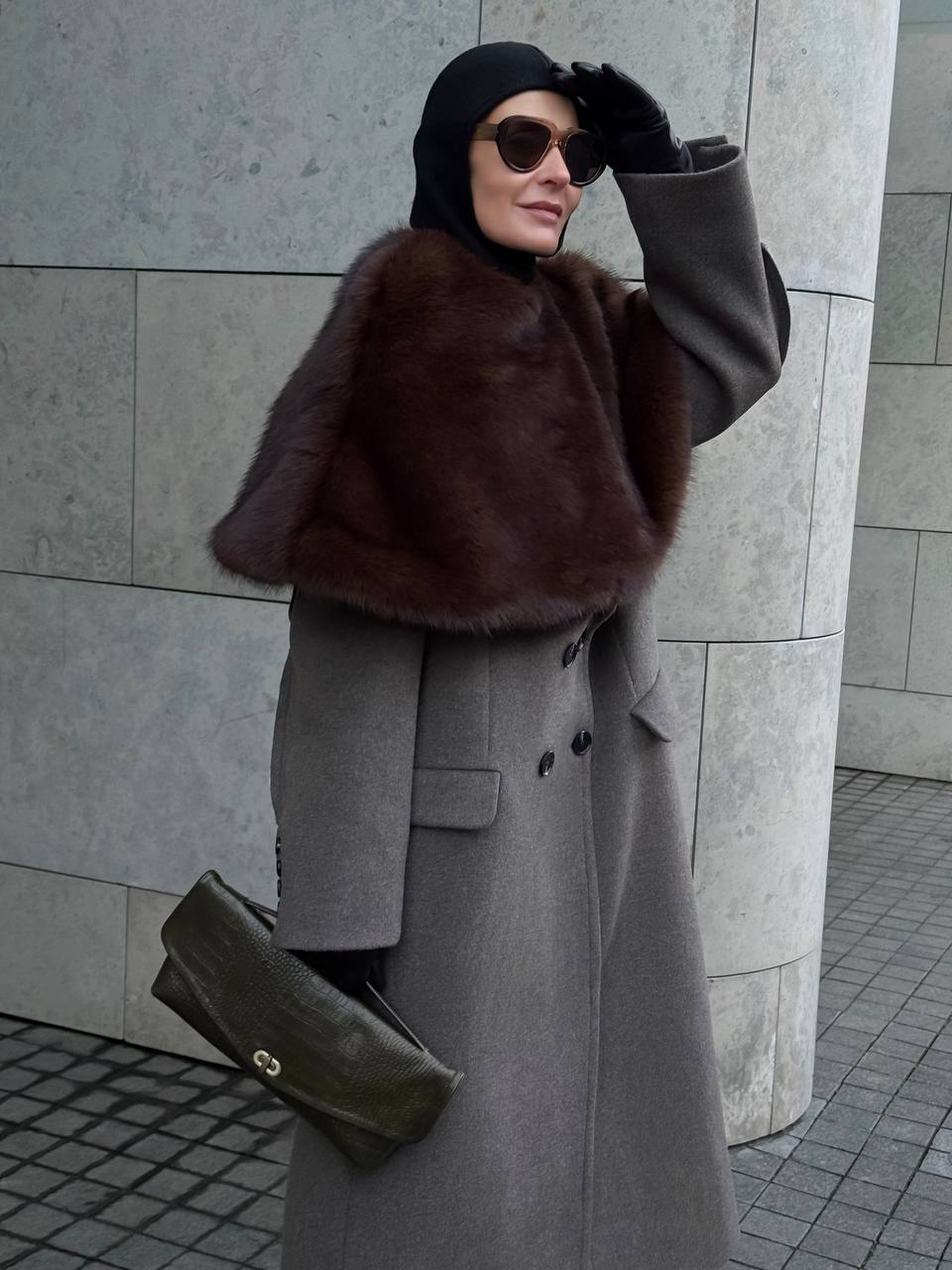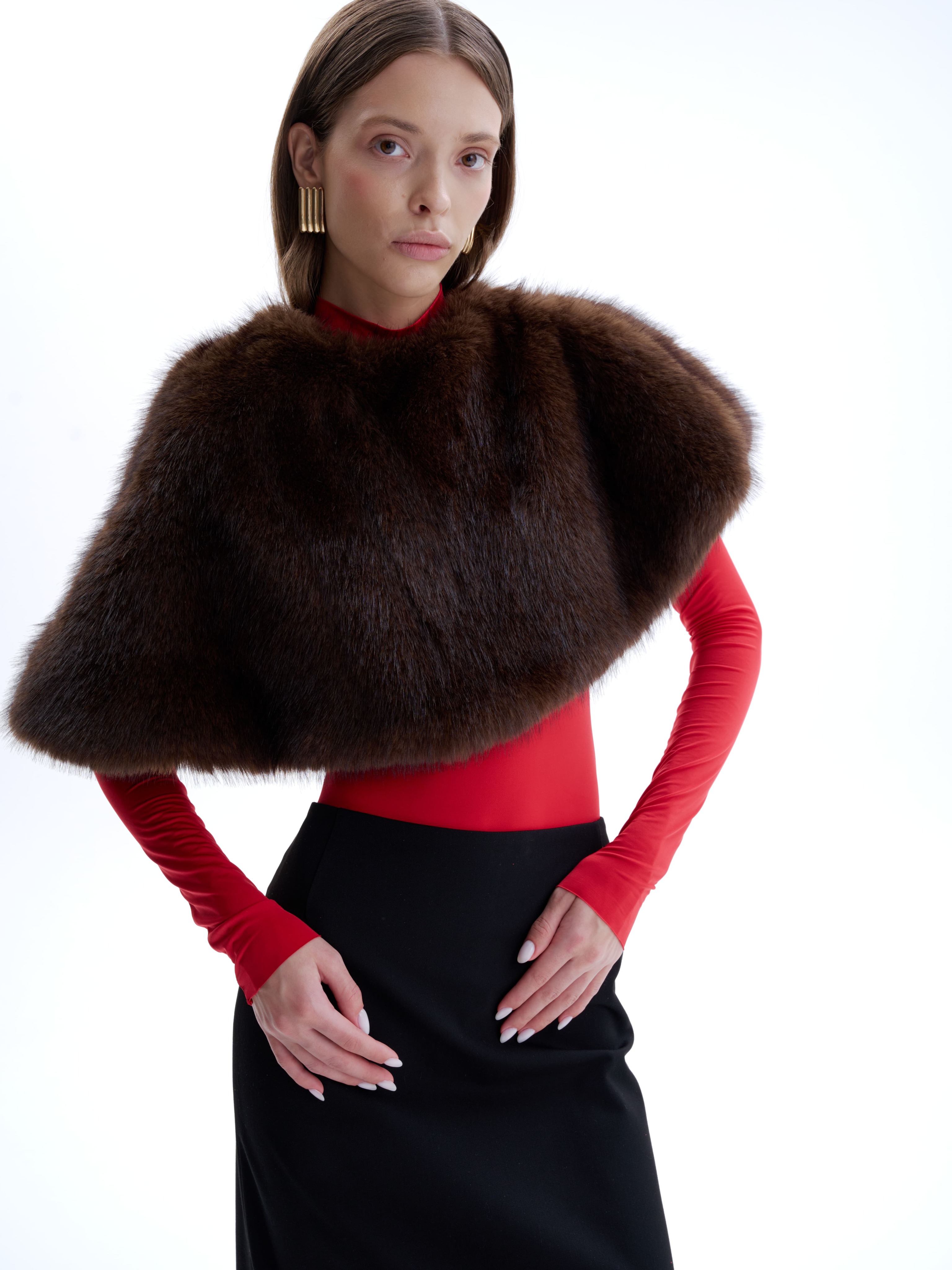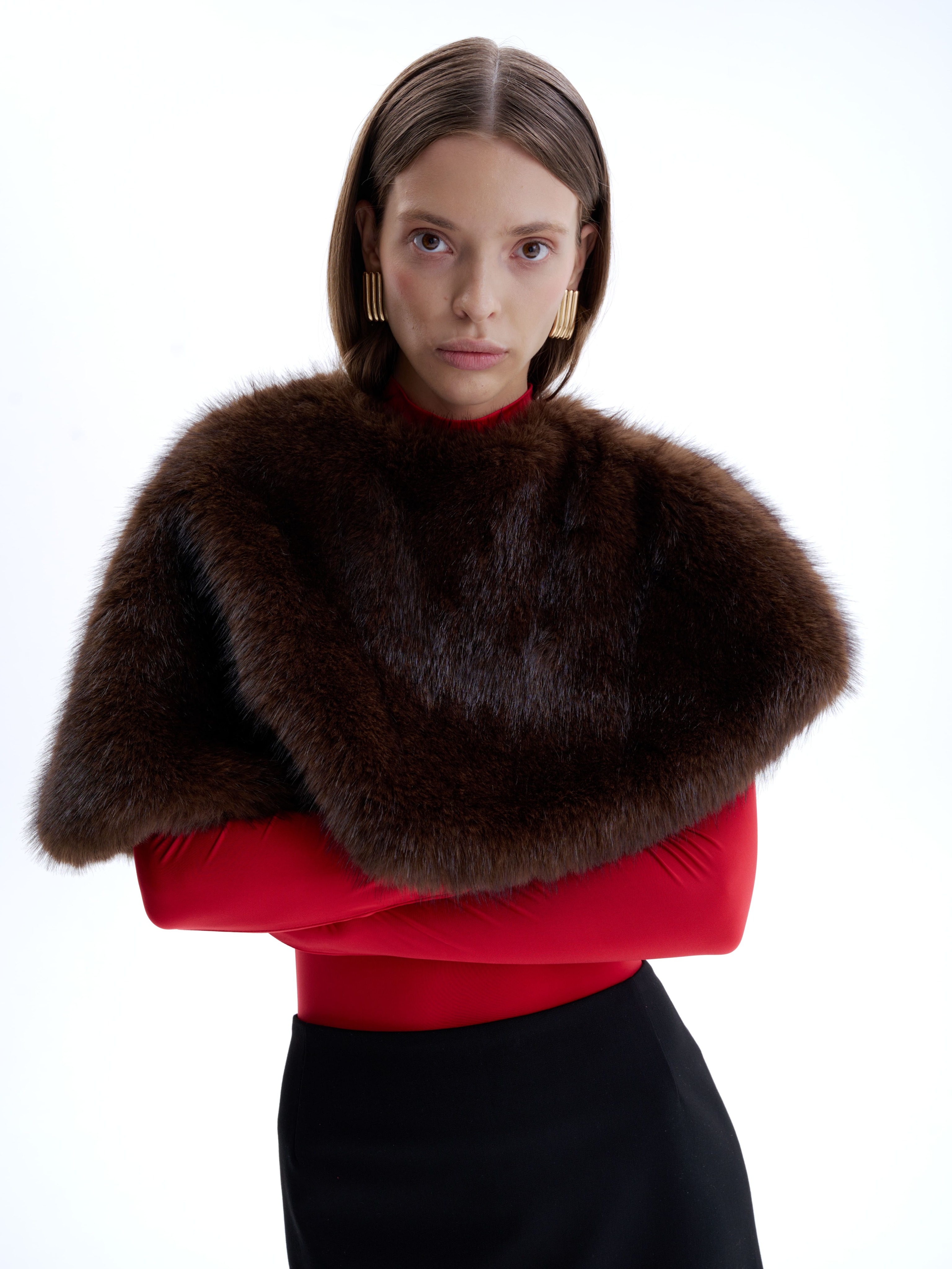 Асимметричная меховая накидка, выполнена из искусственного меха соболя, внутри подкладка из гладкой вискозы, застегивается на скрытые магниты. Дополнит любой зимний образ, можно носить, как самостоятельный элемент, так и поверх пальто или куртки.