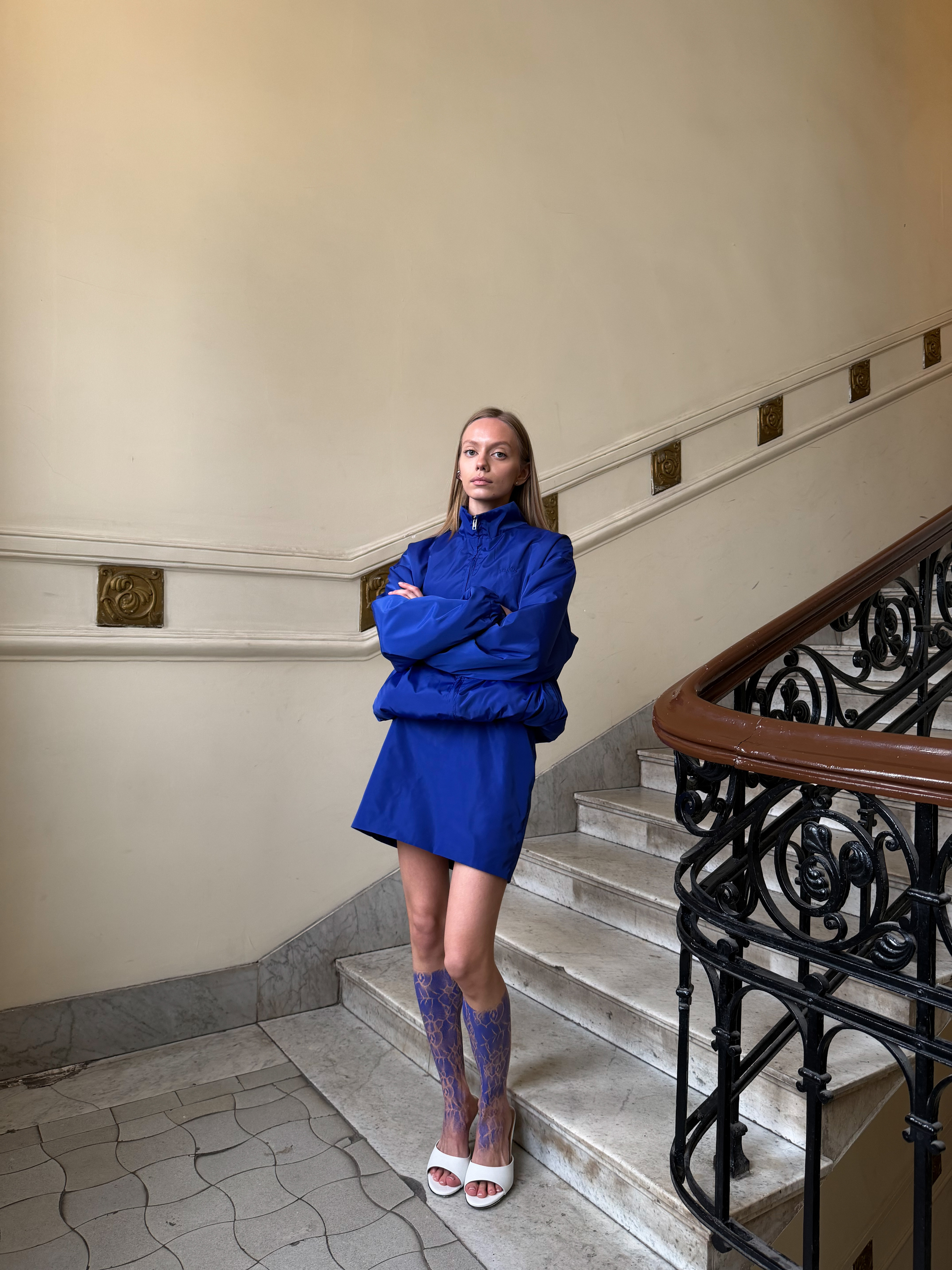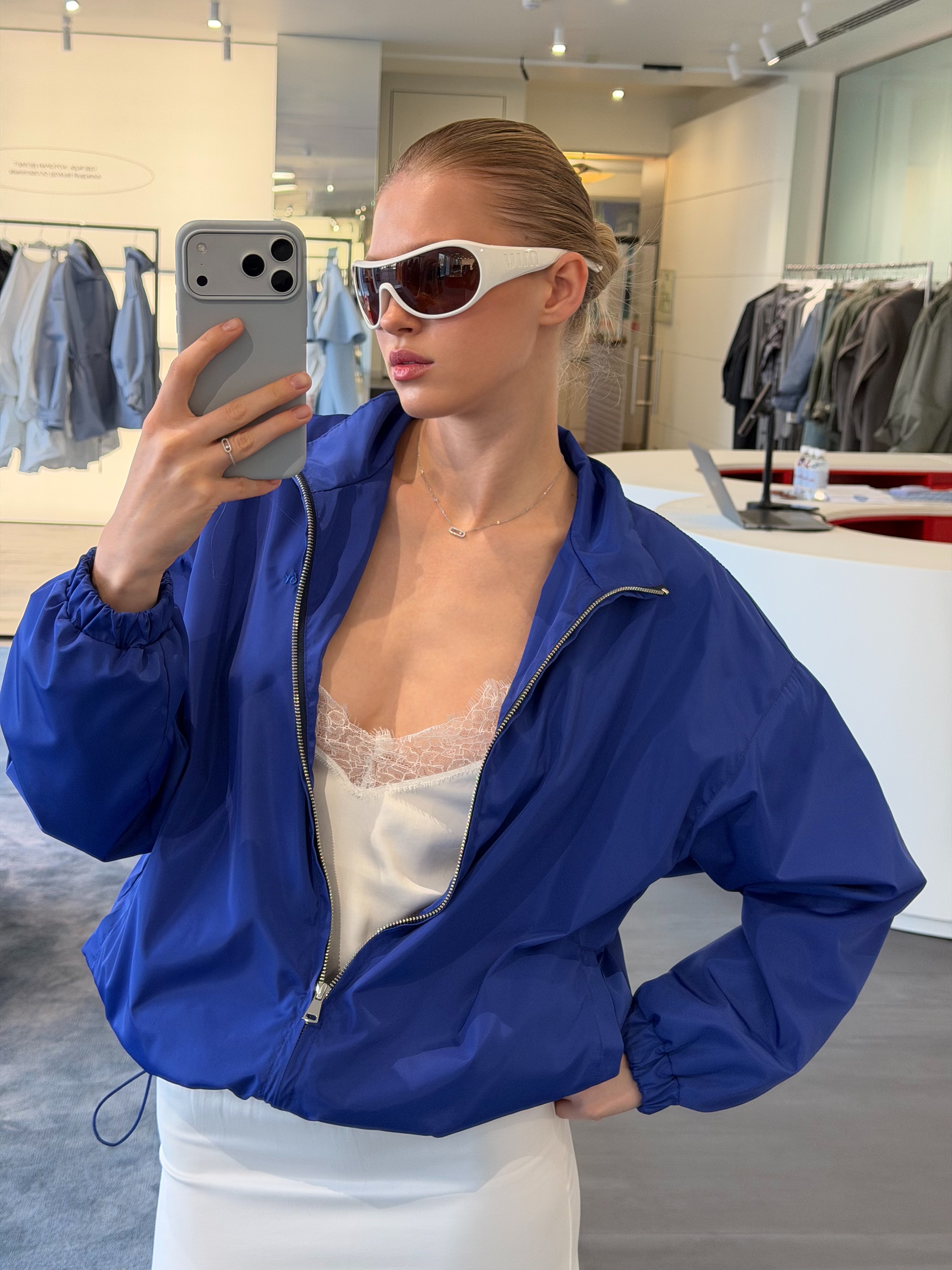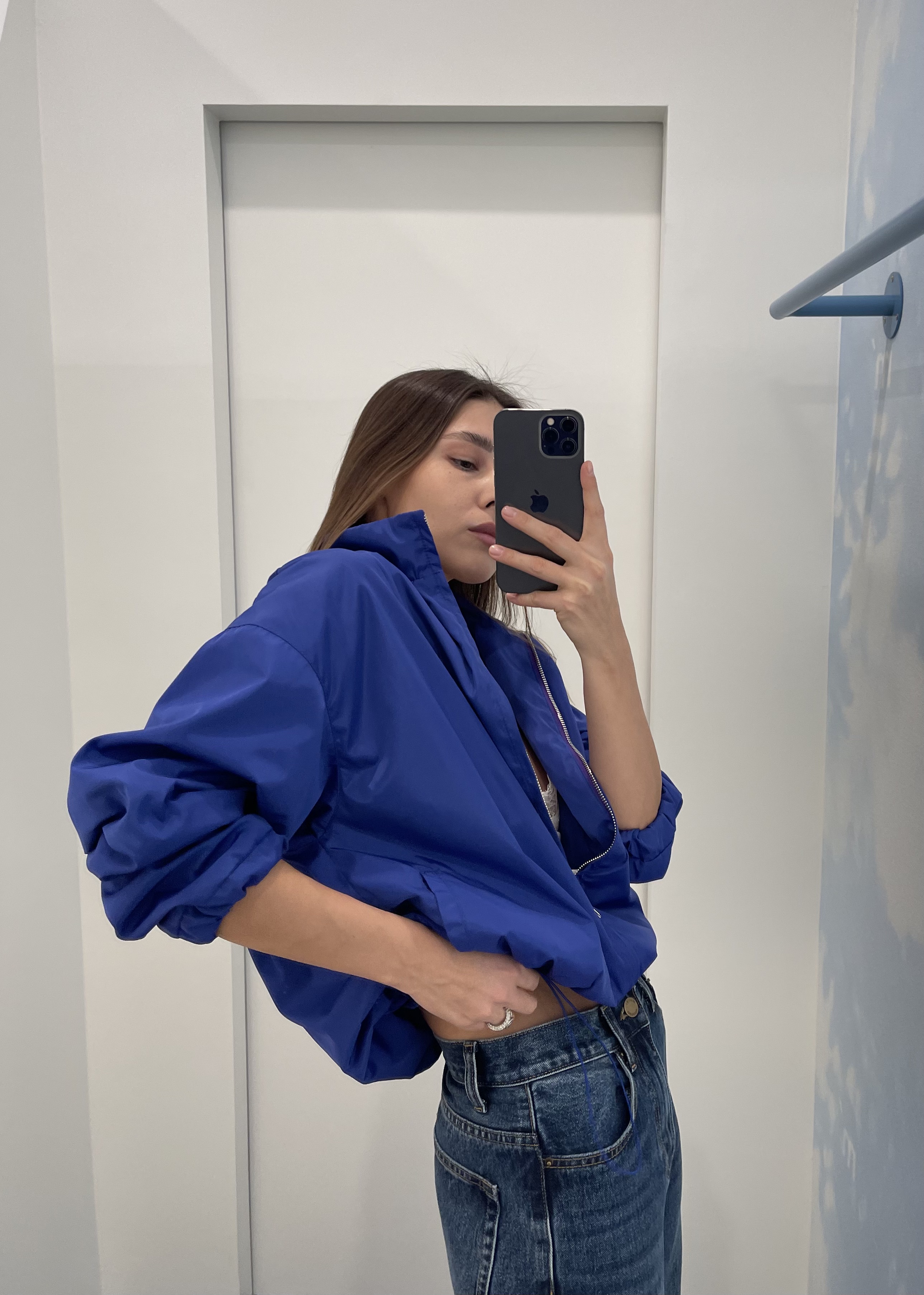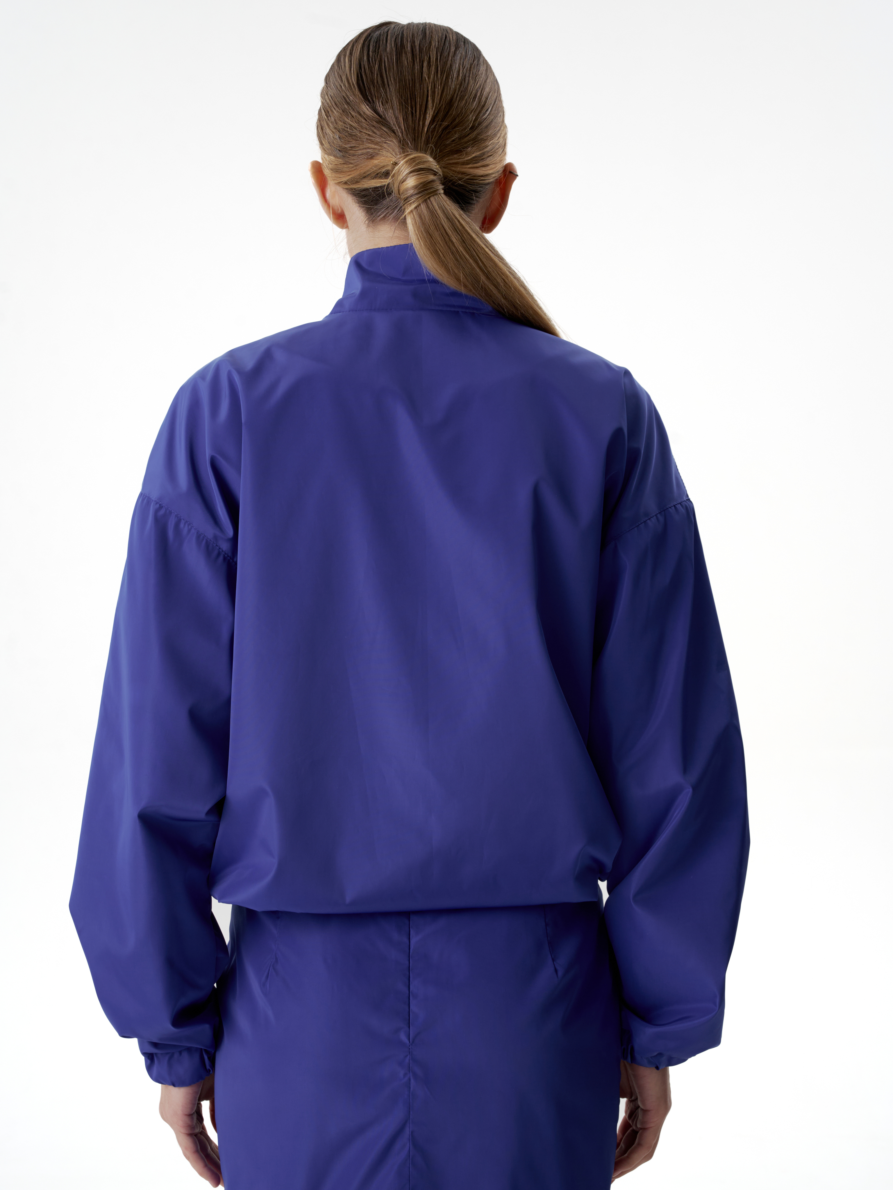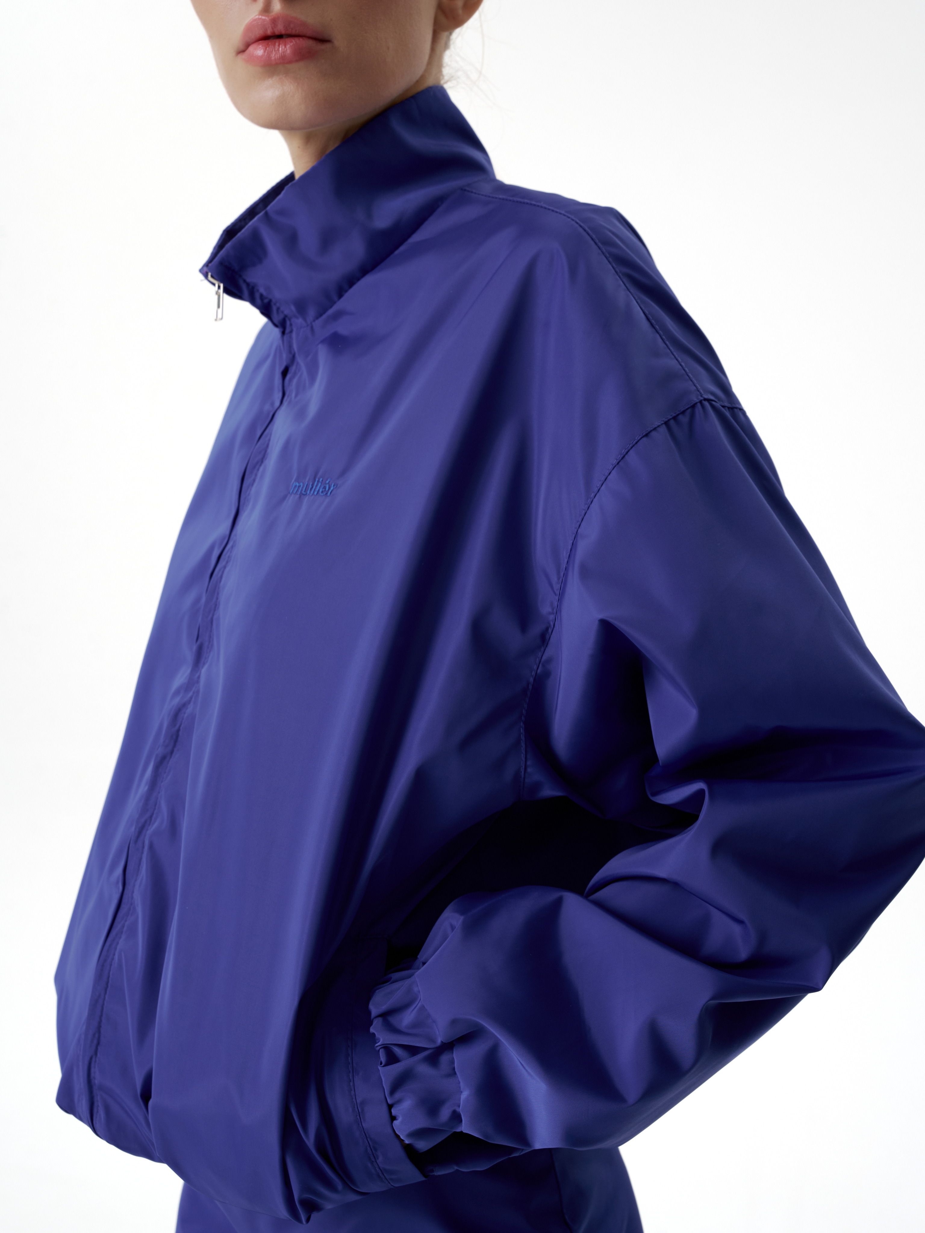 Бомбер свободного силуэта выполнен из гладкого нейлона с легким деликатным блеском. Модель на металлической молнии с высоким воротником-стойкой защищает от ветра и органично вписывается в повседневные образы. Фиолетовый оттенок добавляет образу глубины и выразительности, оставаясь при этом универсальным для сочетаний.