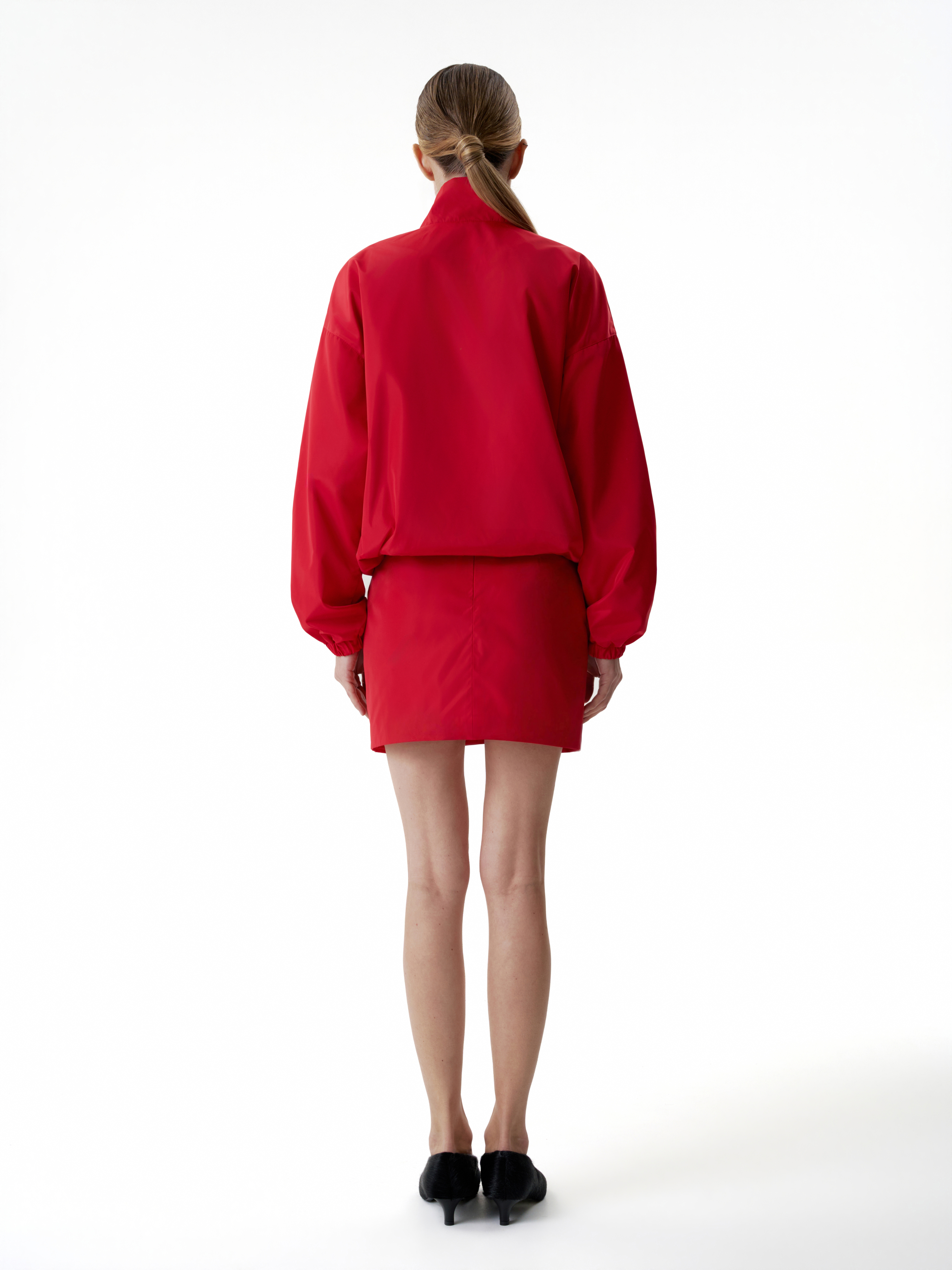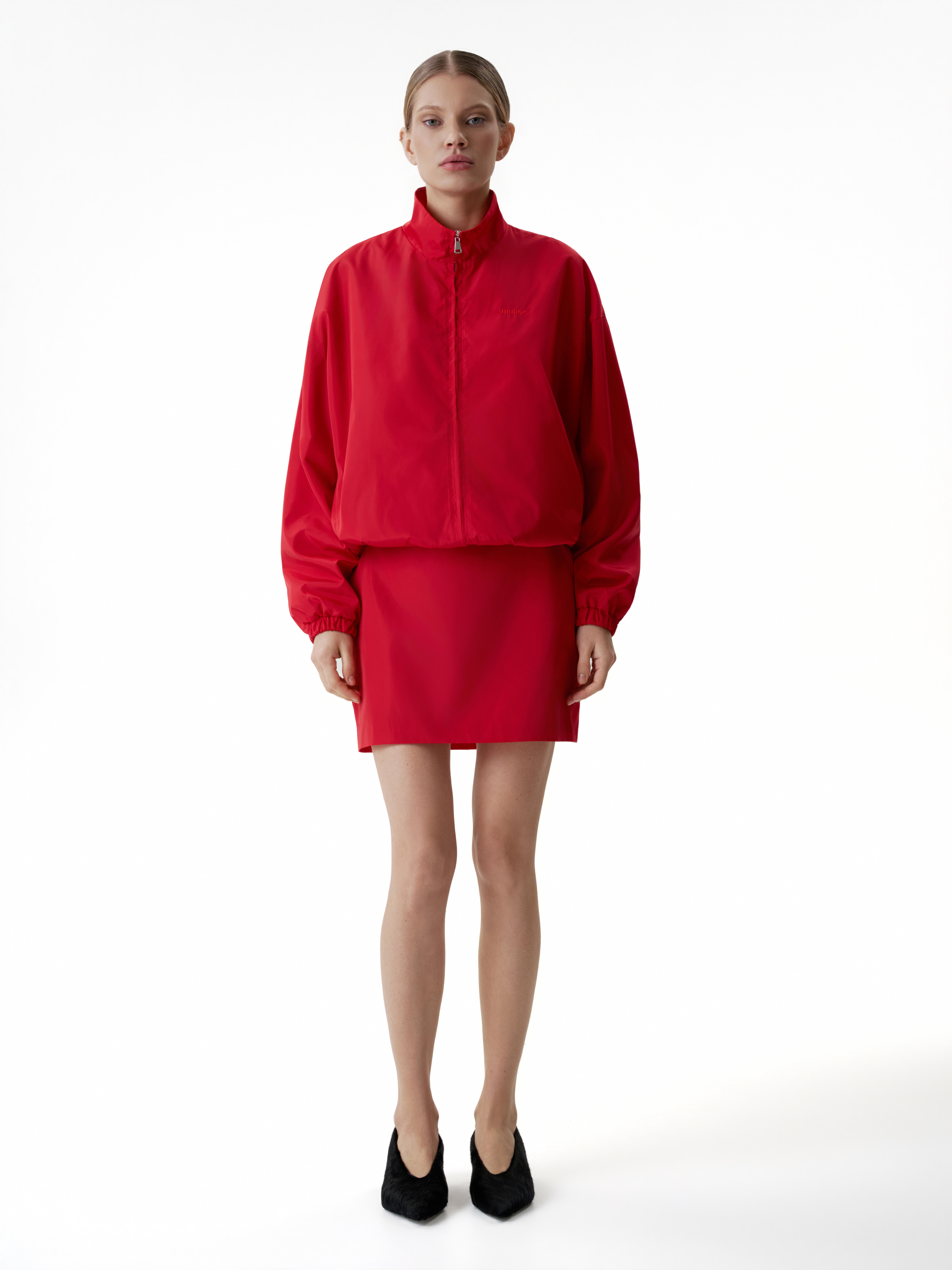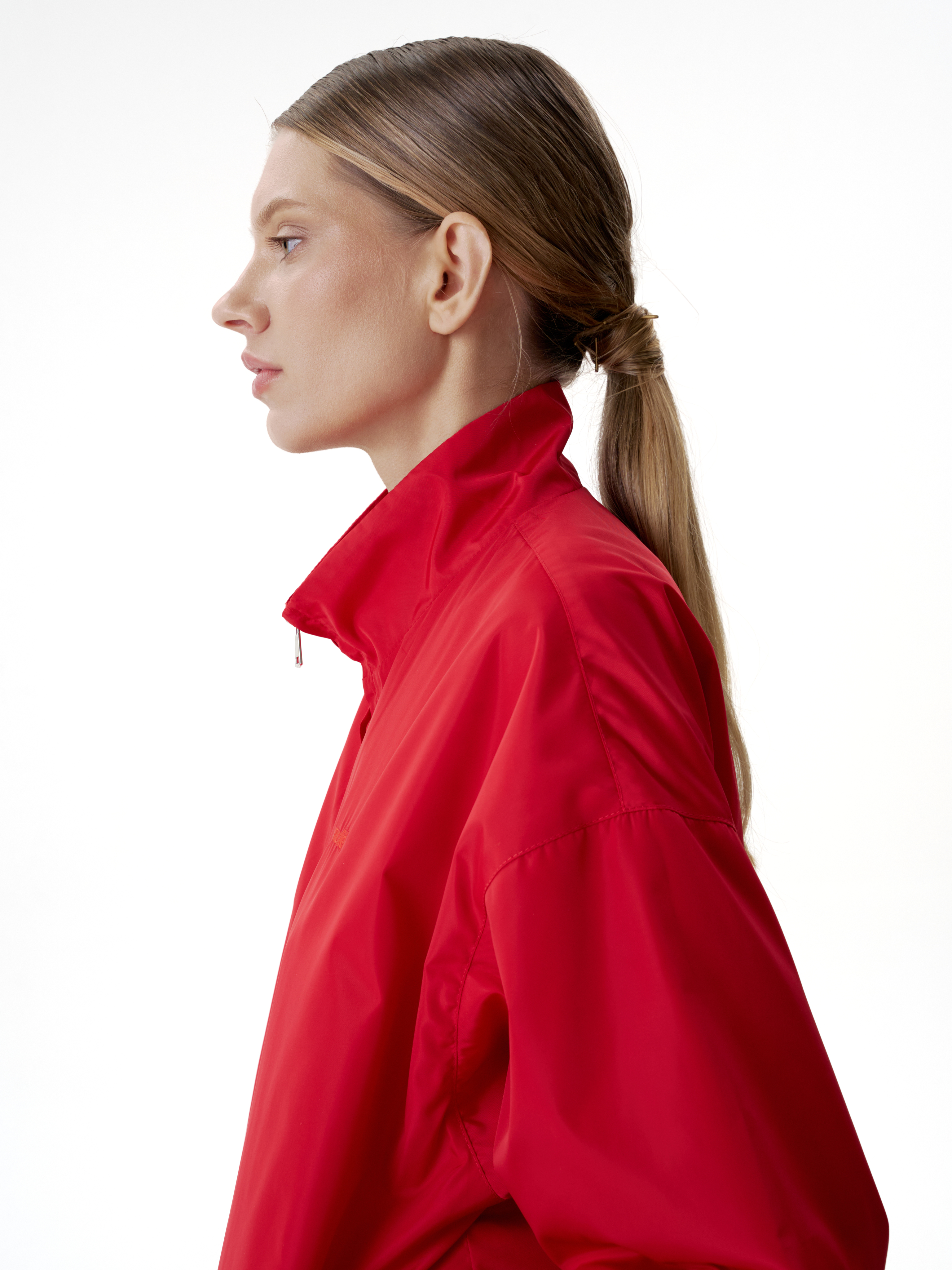 Бомбер свободного силуэта выполнен из гладкого нейлона с легким деликатным блеском. Модель на металлической молнии с высоким воротником-стойкой защищает от ветра и органично вписывается в повседневные образы. Фиолетовый оттенок добавляет образу глубины и выразительности, оставаясь при этом универсальным для сочетаний.