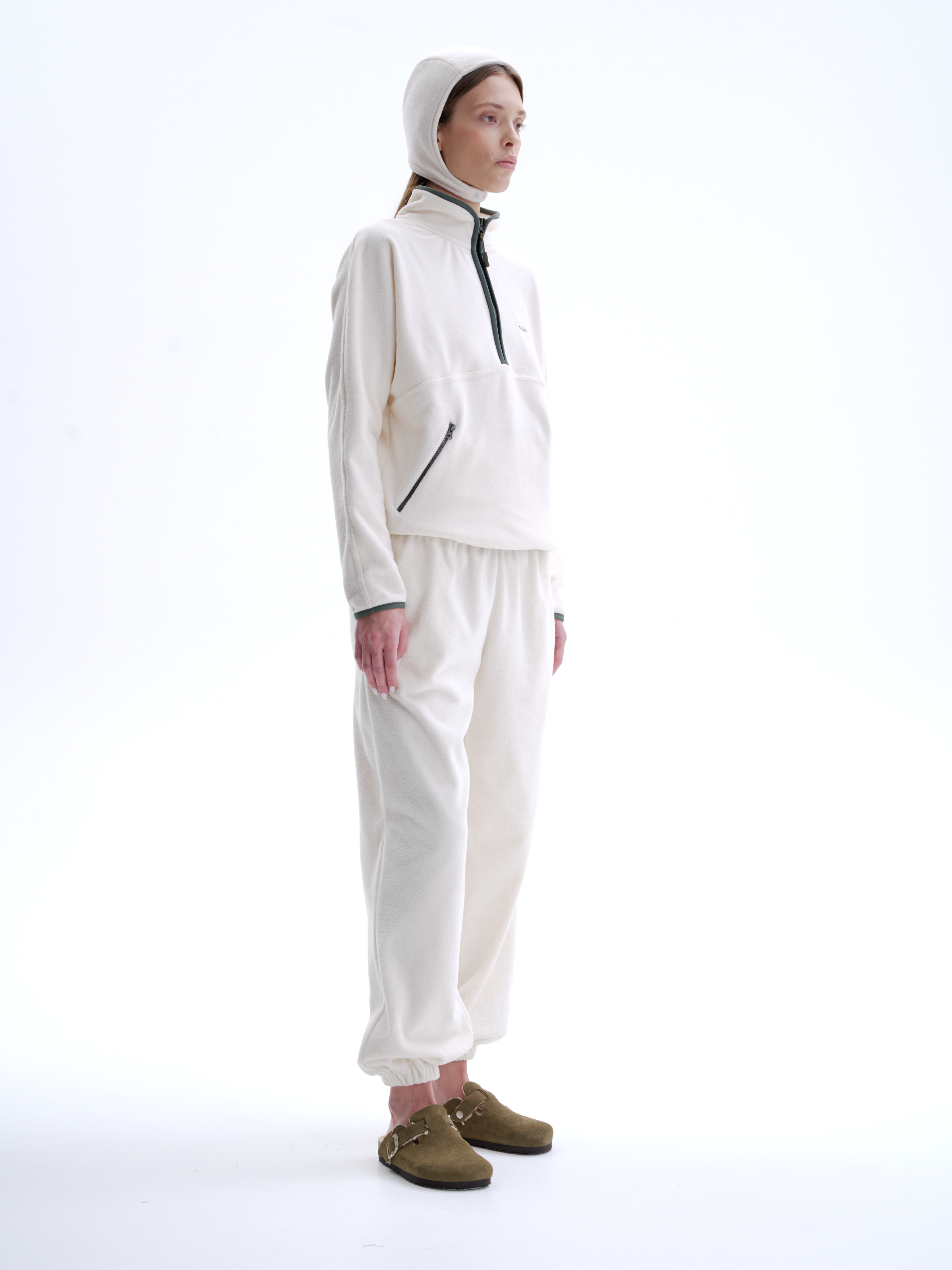 Свободные брюки из мягкого флиса с карманами. Флис технологичный и тонкий, не собирается под верхней одеждой при этом сохраняет тепло. Пояс и манжеты на мягкой резинке также на поясе имеется регулирующий шнурок для более точной посадки на фигуре. Идеальный комплект с анораками и лонгсливами.