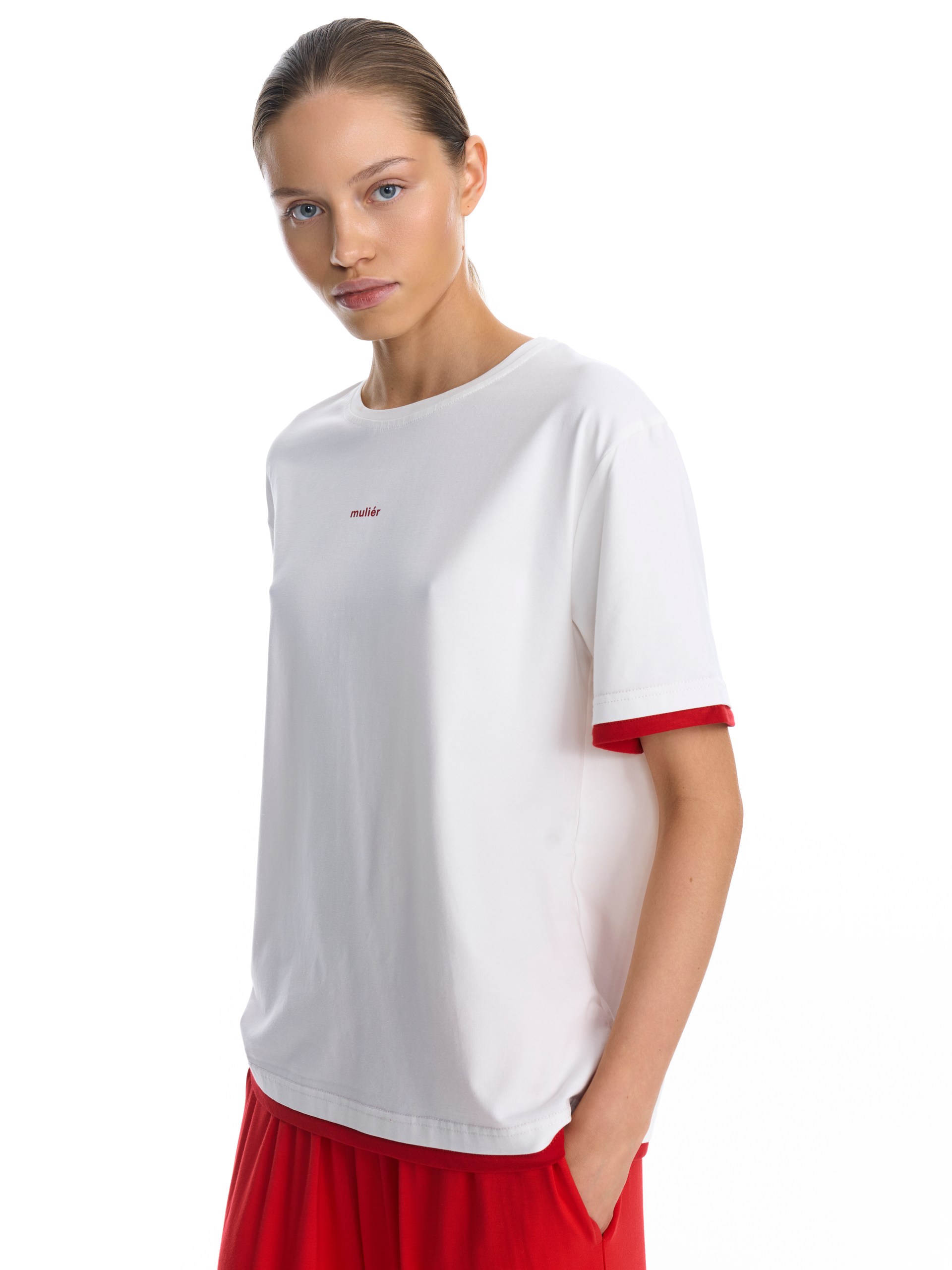 Футболка оверсайз белая с контрастной окантовкой