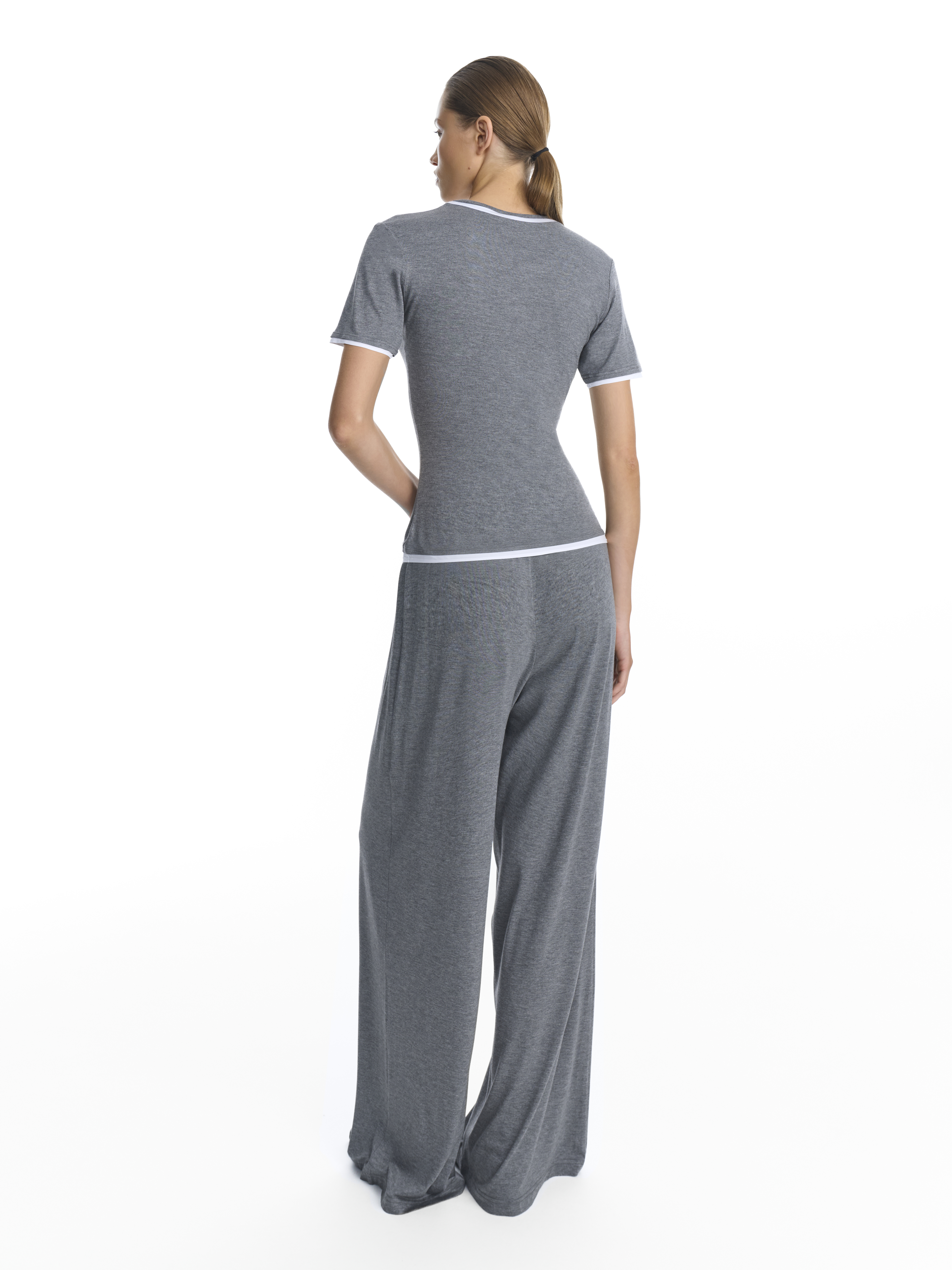 Сочетайте футболку с нашими шароварами и прямыми трикотажными брюками или классическими укороченными брюками.