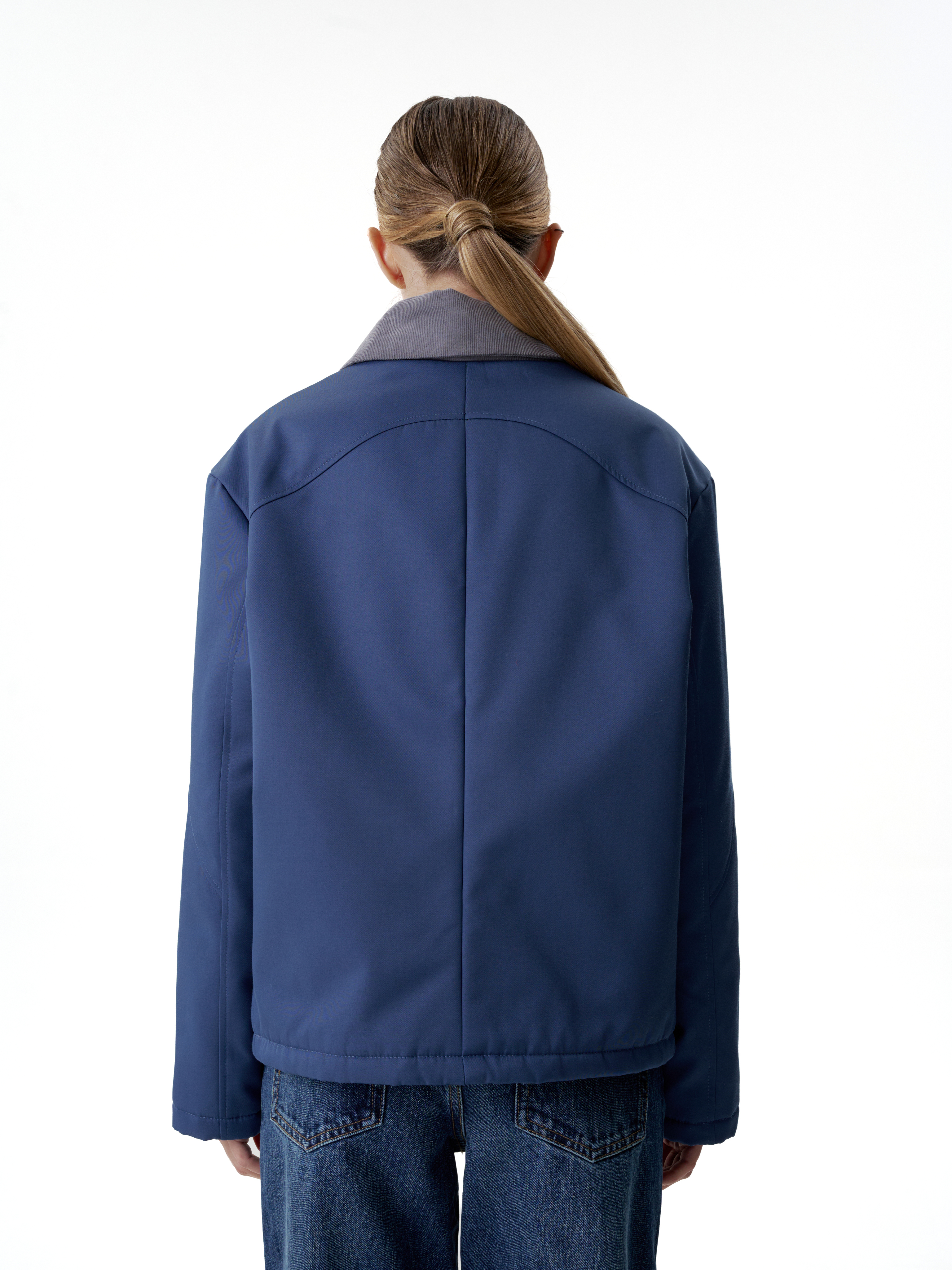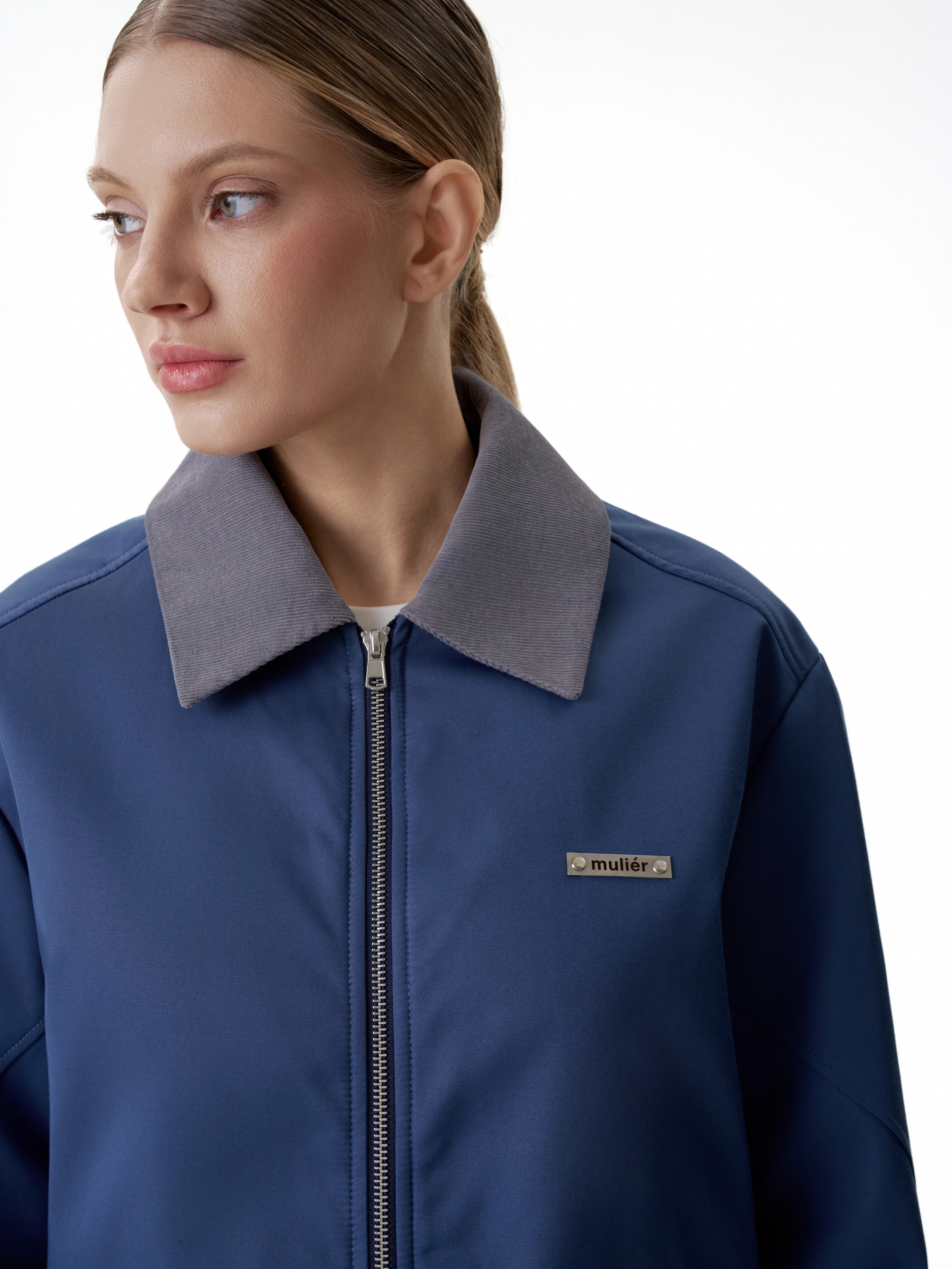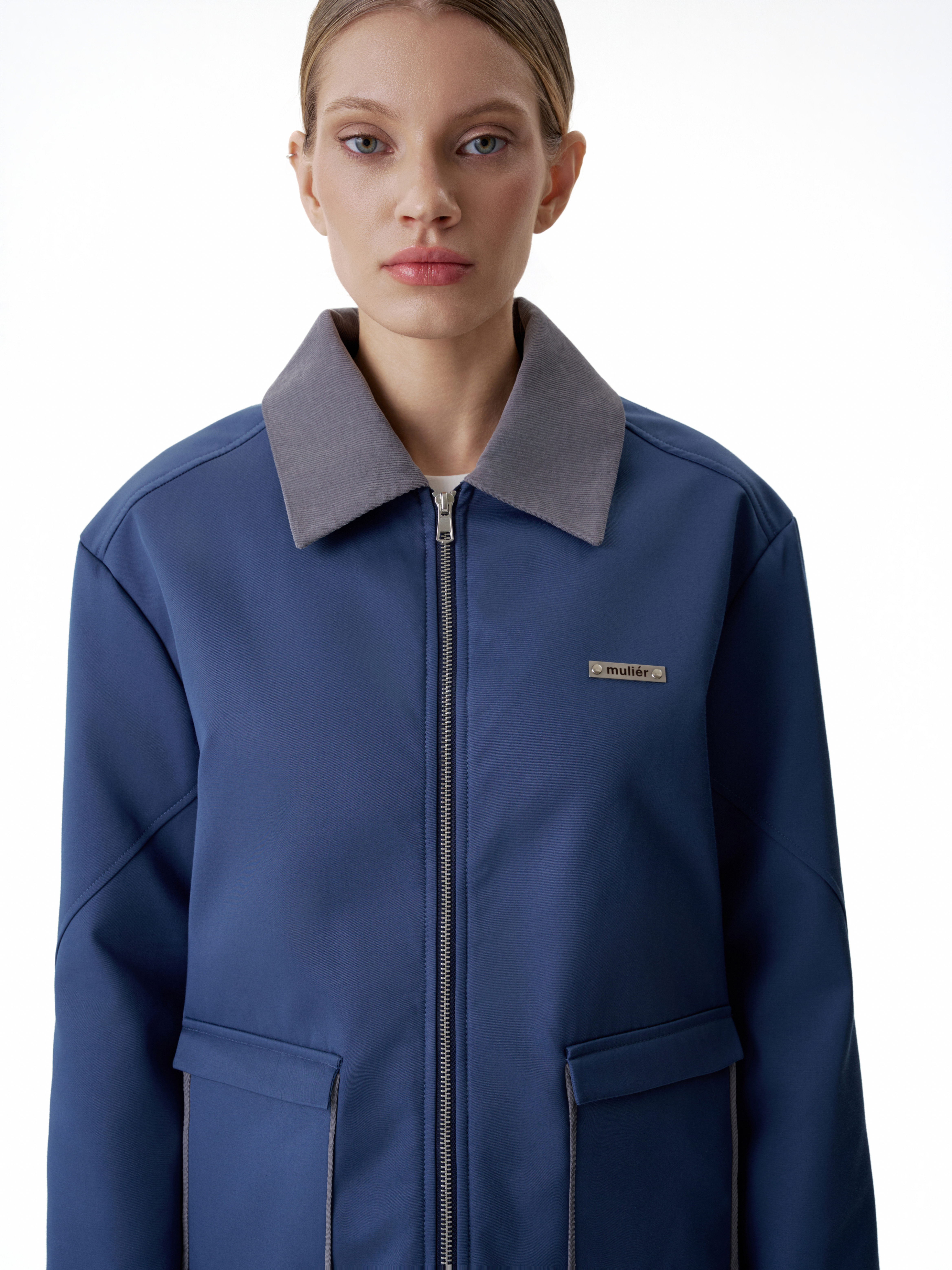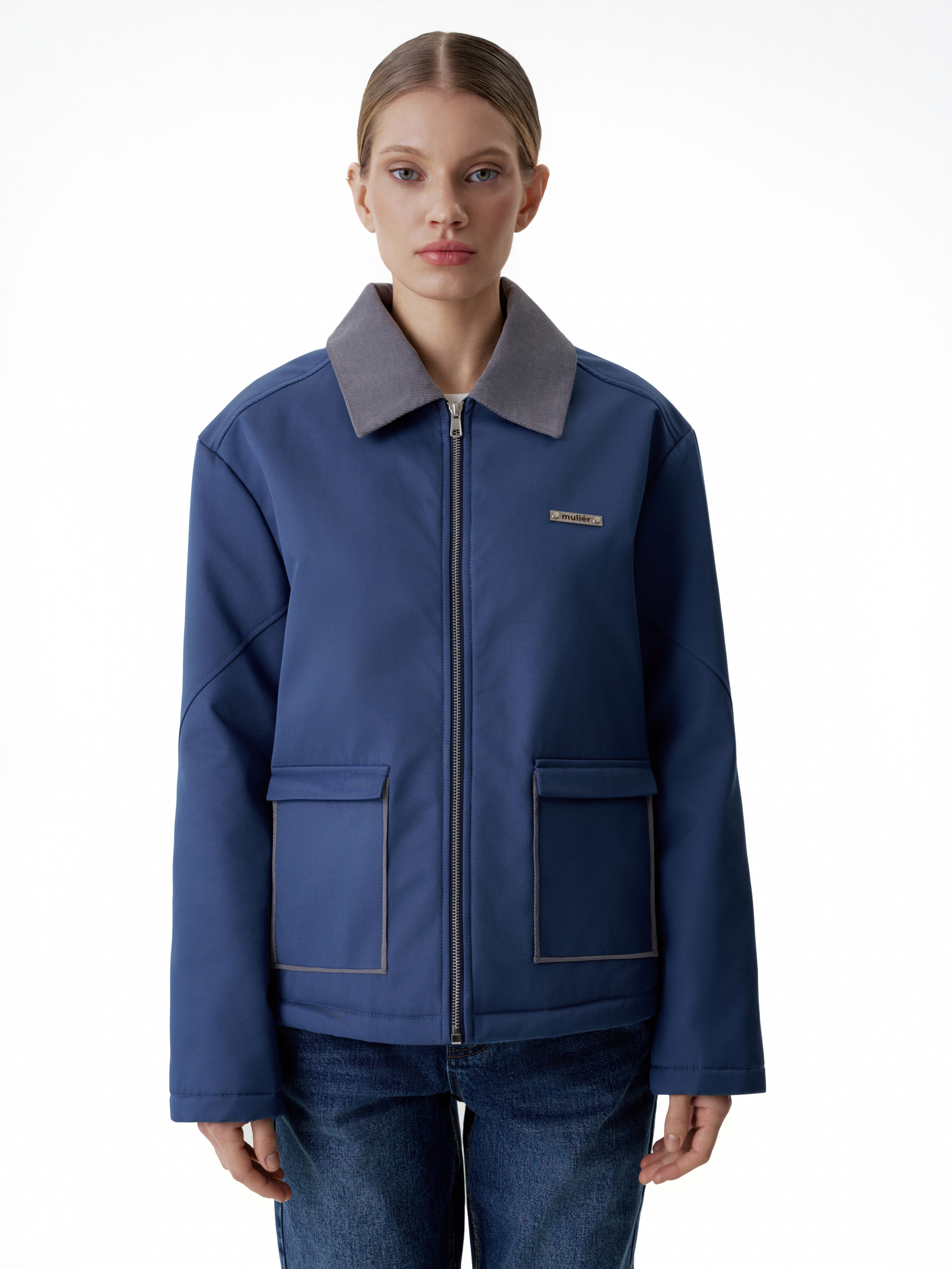 Контрастный воротник добавляет изделию глубины и делает его визуально выразительным без лишних деталей. Карманы-листочки с кантиком в тон воротника, застегивается на металическая молнию, на груди минималистичный фирменный логотип.