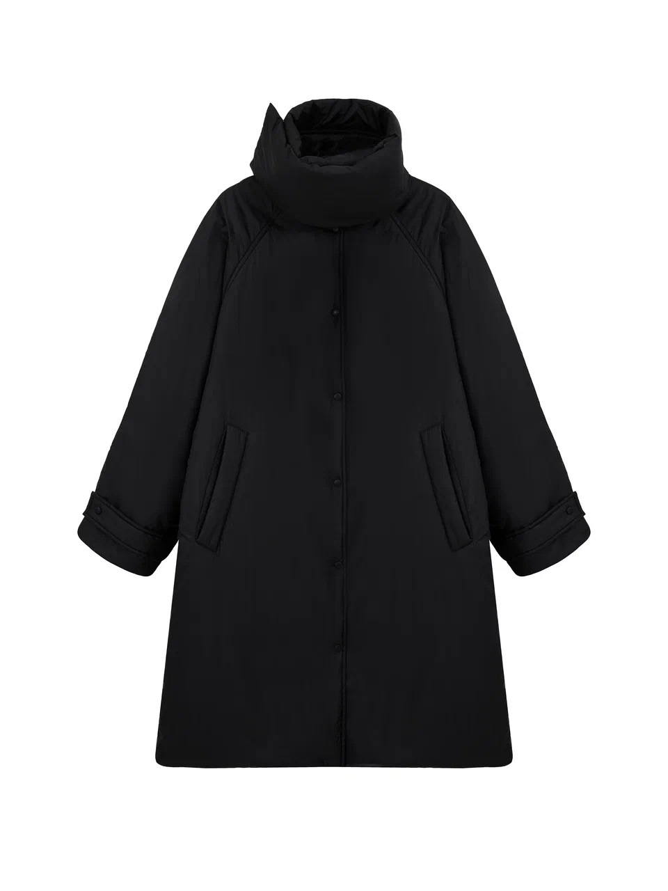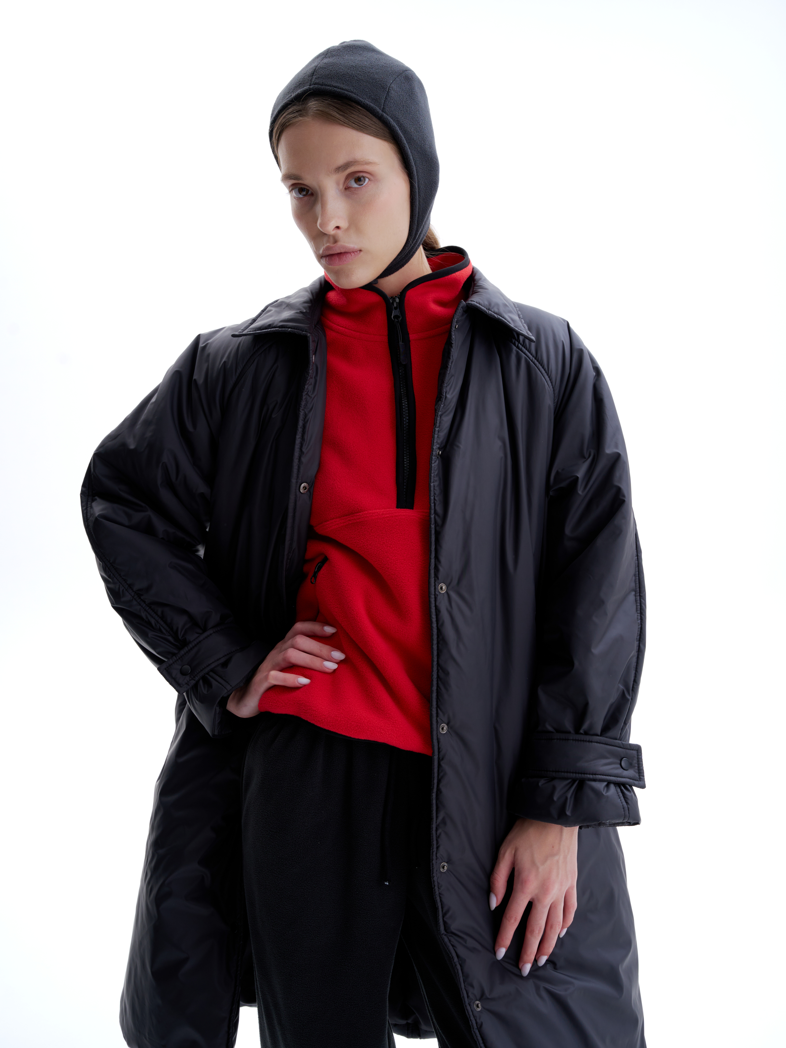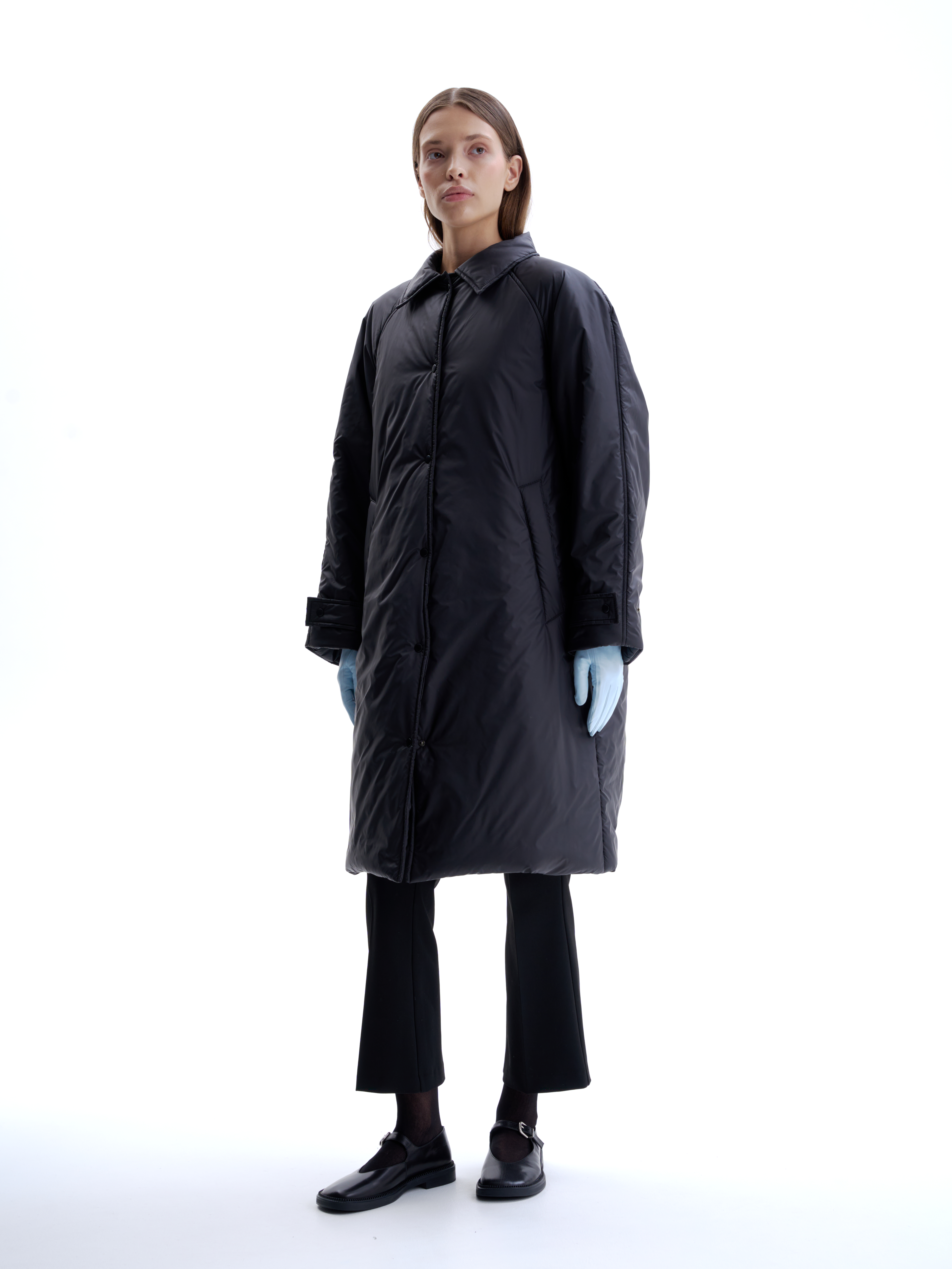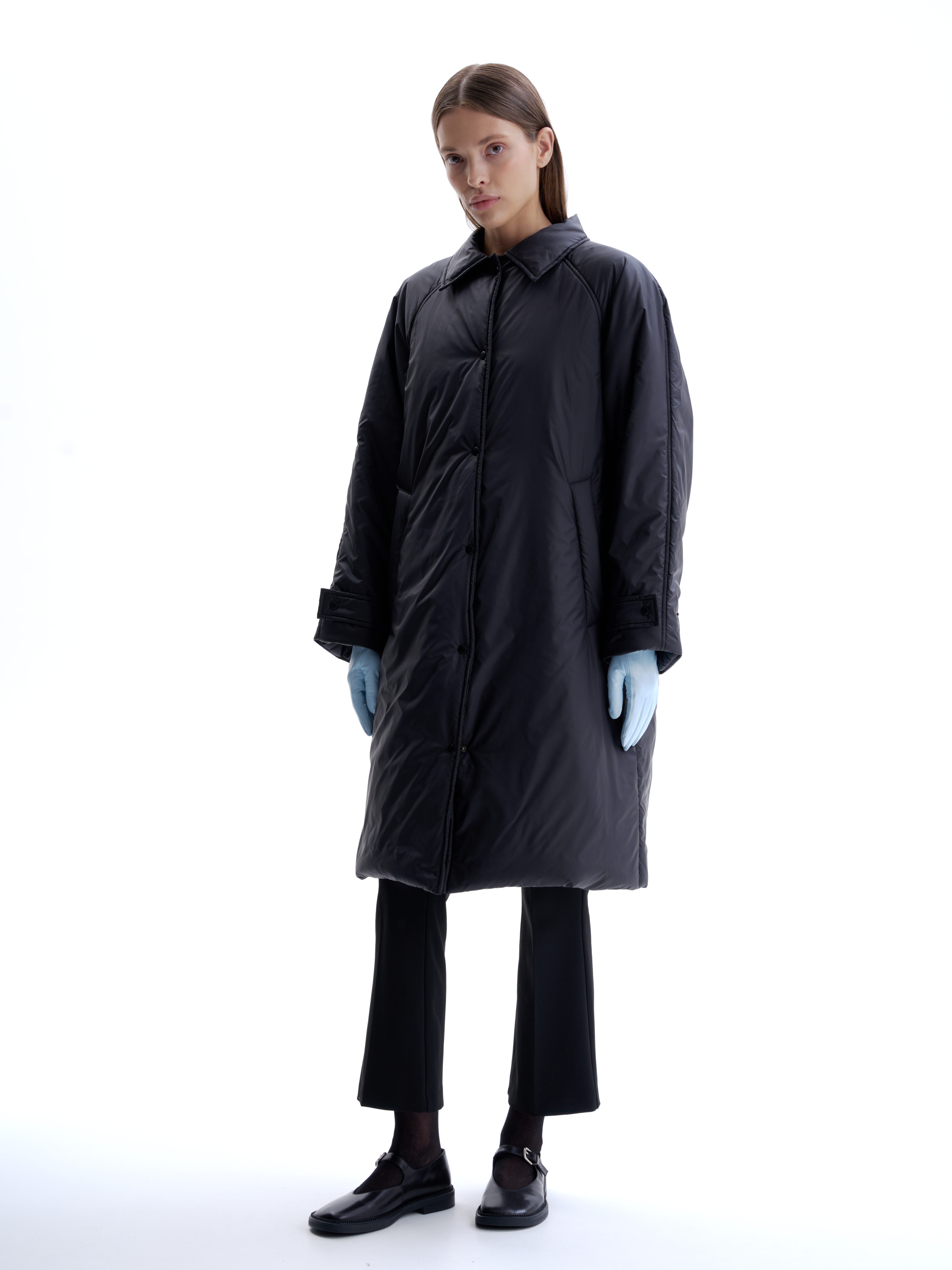 Утепленное пальто - пуховик со съемным шарфом на кнопках, который в зависимости от погоды можно носить разными способами. У пальто свободный крой, два кармана, отложной воротник с внутренним магнитом, дает возможность поднять ворот и зафиксировать без лишней фурнитуры. В пальто премиальный утеплитель ISOSOFT, температурный режим до -15 градусов. Изделие выполнено из водоотталкивающей плащевой ткани, застегивается на матовые кнопки, на рукавах регулируемые хлястики, на спине минималистичный металлический логотип.