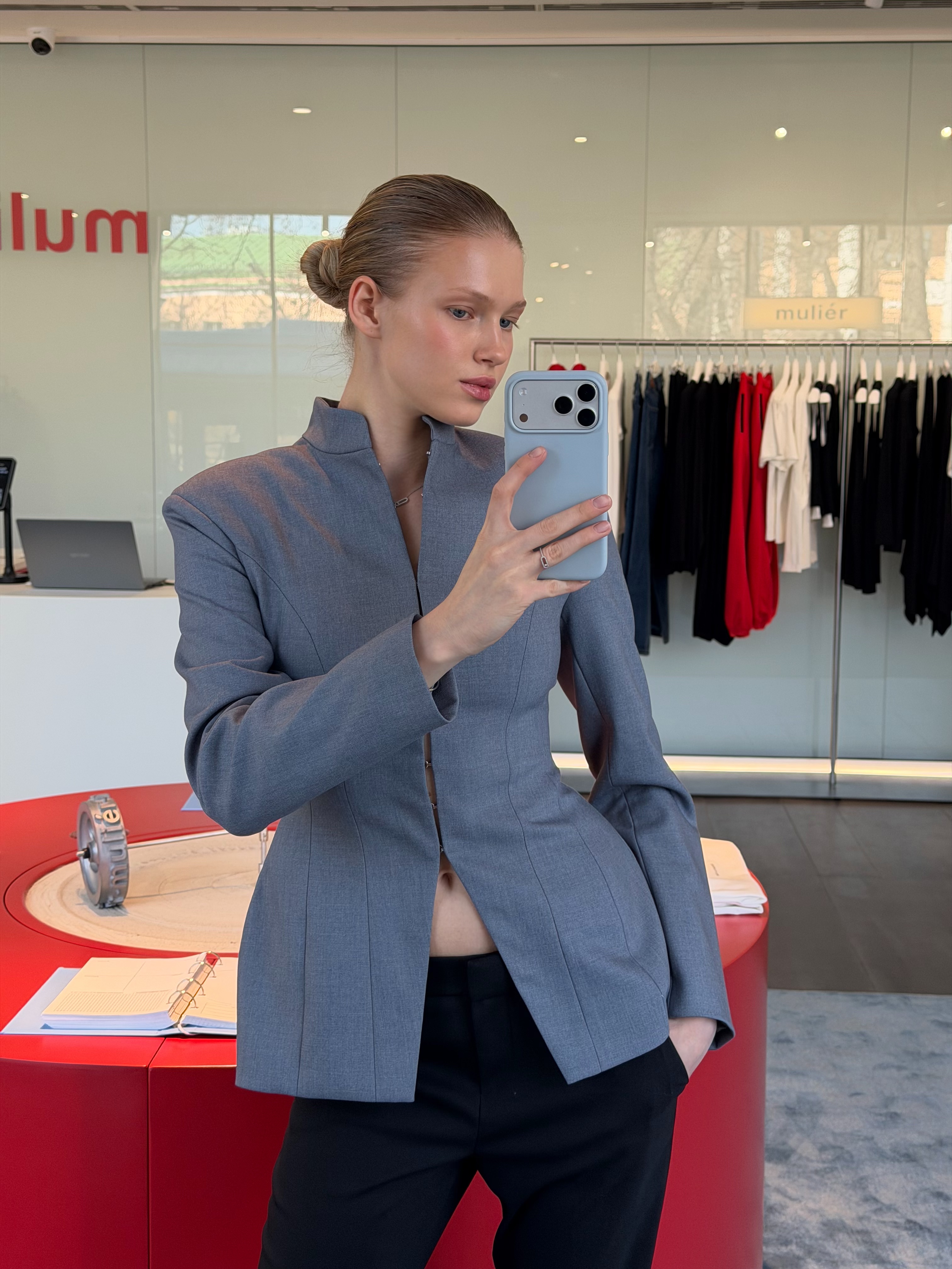 Жакет станет выразительной основой для собранных комплектов — его можно сочетать как с юбкой из комплекта, так и с более повседневными элементами гардероба, создавая современный, структурный образ.