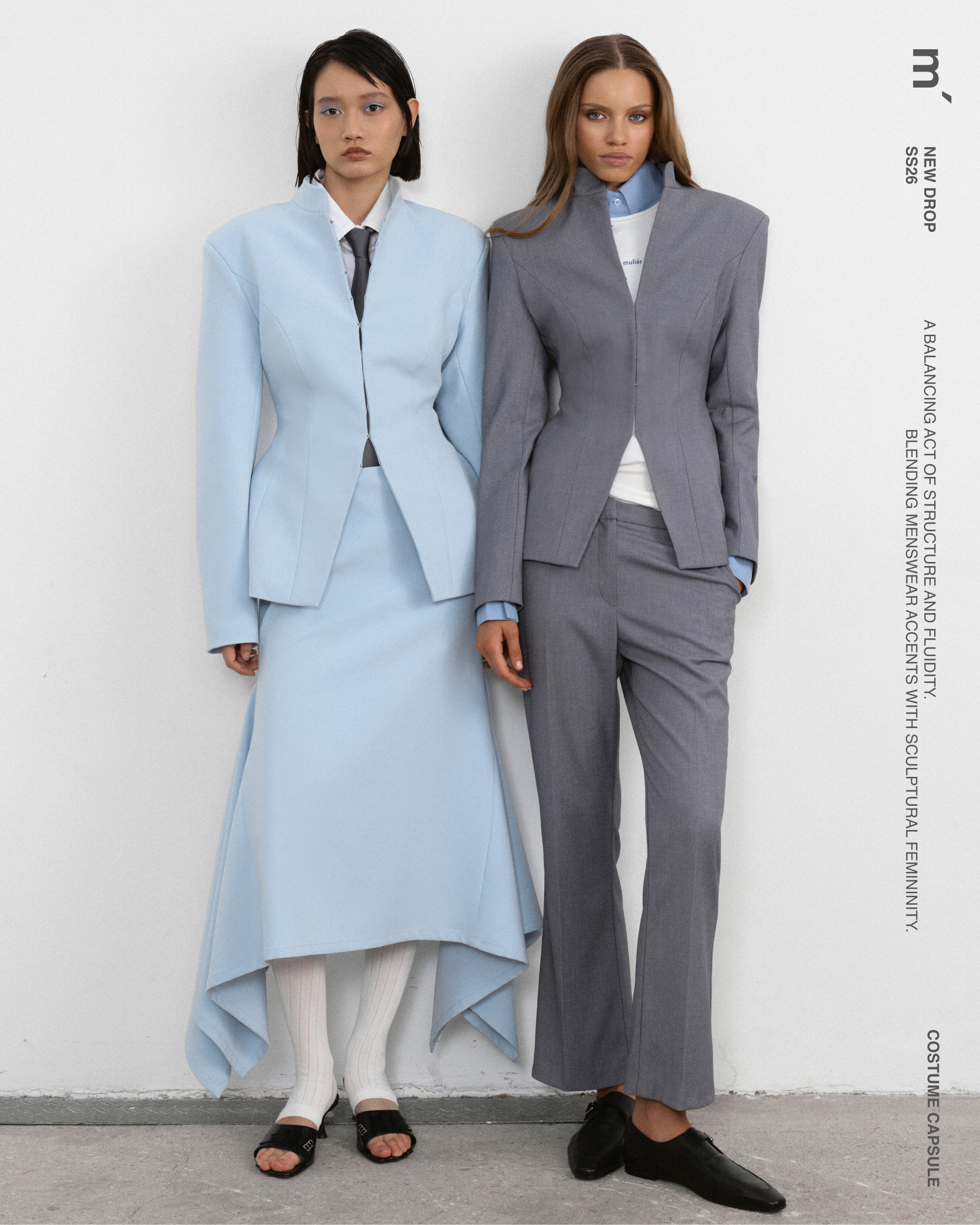 Жакет станет выразительной основой для собранных комплектов — его можно сочетать как с юбкой из комплекта, так и с более повседневными элементами гардероба, создавая современный, структурный образ.